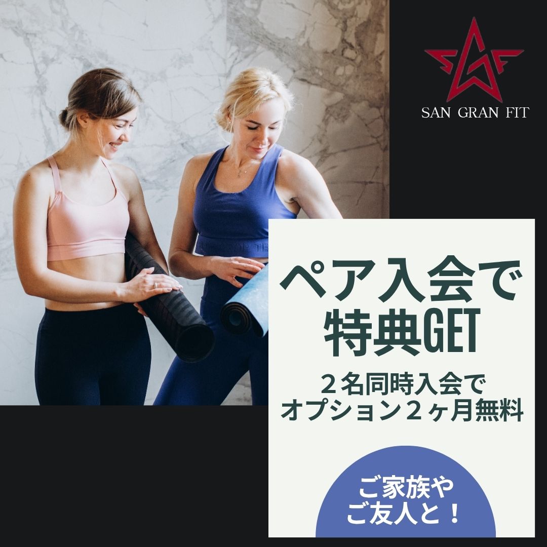 2025年3月27日 UP | キャンペーン ペア割実施中★2名様同時にご入会でオプション2ヵ月分が無料 ご家族、ご友人と一緒にお手続きでお得に! 2名様一緒にご入会手続きに来ていただくとロッカーオプション2ヶ月分が無料になります! ※予告なしにキャンペーンが終了することがございます。 前のお知らせ 次のお知らせ NEWS 代行・休講のお知らせ